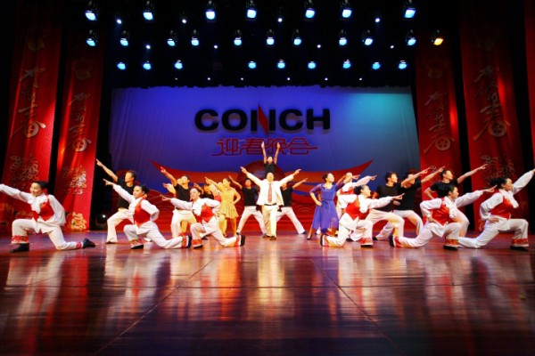 四段精彩纷呈的歌舞表演后,快板《夸夸咱们陕甘区域大发展》,讲述了2012年里陕甘区域抓管理、拓市场、创效益、谋发展所带来的巨大成绩,鼓舞海螺人向更高的世界500强目标冲刺。