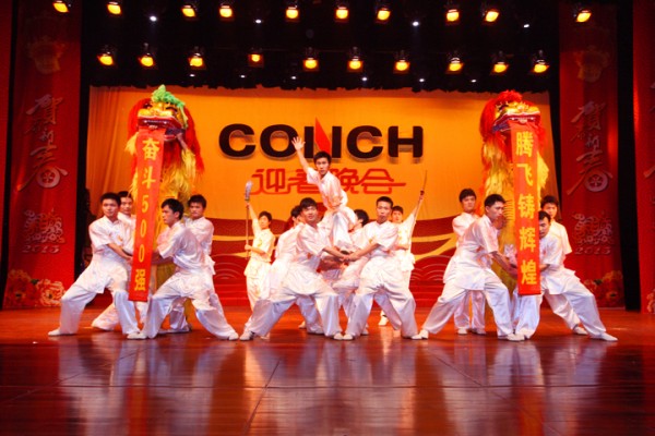 《精忠报国》的乐声中,枞阳海螺带来了武术表演《武光十色》,两只舞狮队的登场将晚会推向了最高潮。