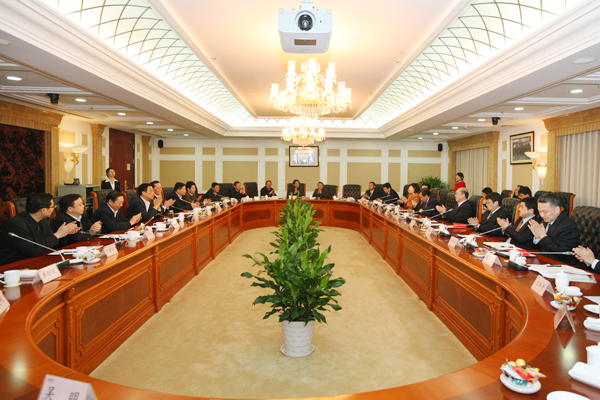郭文叁董事长首先对宣城市党政领导一行来海螺慰问指导,表示热烈的欢迎和衷心的感谢。他说,海螺集团的改革和发展离不开市各级领导多年来的支持与厚爱,宁国水泥厂、宣城海螺良好的发展势头和经营业绩也得益于各级领导的关怀,希望童书记和各位领导一如既往地给予海螺发展以指导和支持。