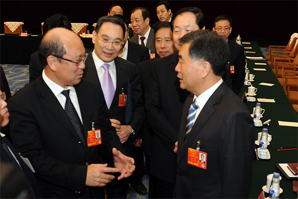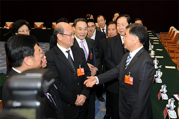 2013年3月11日下午,十二届全国人大一次会议安徽代表团召开全体会议,审议国务院机构改革和职能转变方案,中央政治局委员汪洋作为安徽代表参加审议。
