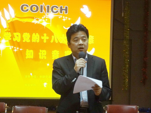 为深入贯彻落实中央、省委和省国资委文件精神,迎接中国共产党成立92周年,引导各基层组织和广大党员干部,进一步深入学习党的十八大精神和新《党章》,加强基层党组织建设,提升党员党性修养,充分发挥党组织战斗堡垒和党员先锋模范作用,5月10日,集团公司学习党的十八大和党章知识竞赛在宁国水泥厂海螺文化宫隆重举行。集团、部室领导,参赛选手及宁宣黄三公司领导、员工代表百余人到场观看了比赛。