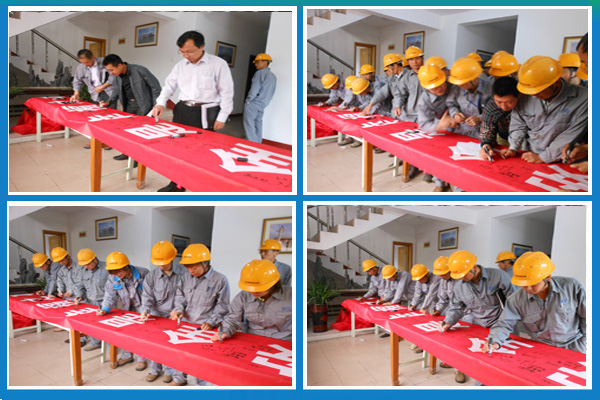 签名结束后,公司在二楼会议室召开安全月活动动员大会,会上,传达了集团公司《关于下发2013年“安全生产月”活动方案的通知》,下发了公司安全月活动方案,以创建安全标准化为中心,深入开展安全教育周、安全知识宣传周、应急预案演练周等活动,认真谋划,精心组织,确保安全月活动方案顺利实施。公司团总支书记陈晓俊同志代表全体团员发言,要发挥模范作用,开展青安岗在行动活动,时刻紧绷安全这根弦。粉磨工段员工王正平代表全体岗位员工发言时说,严格按照《四不伤害》防护卡、各《岗位安全操作规程》等规章制度开展工作,严肃查处安全违章违纪,把安全生产逐级负责制度落实到位。