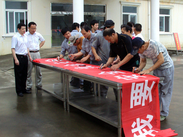 镇江北固海螺:霏霏细雨,阻挡不住员工建设平安北固海螺的热情;寥寥数语,抒不尽打造幸福海螺的美好期望。5月31日,镇江北固海螺举办了安全月活动启动仪式,拉开了安全月活动序幕。在启动仪式上,公司向广大员工发出倡议:重视安全,保障安全,遵守安全制度,告别习惯性违章。公司领导到基层岗位员工一百多人纷纷在横幅上签名,庄严承诺。