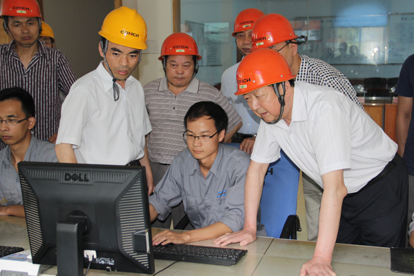 会前,验收专家组成员冒着高温到三期2×4500t/d水泥熟料生产线现场、中控操作室及余热发电汽轮机房,查看了环保设施的运行情况。
