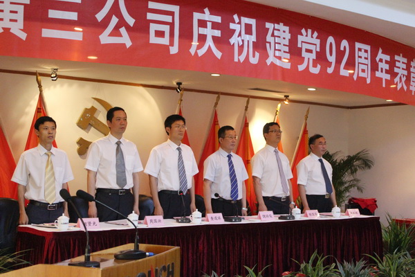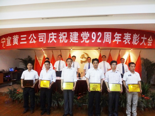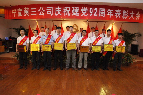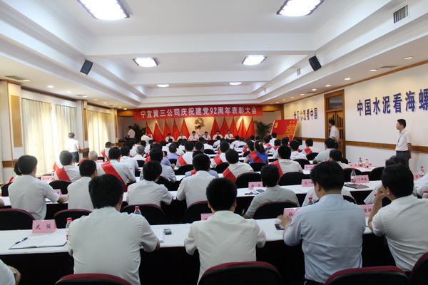 为隆重庆祝中国共产党建党92周年,继承和发扬党的优良传统,深入贯彻落实党的十八大精神,进一步激发广大党员和职工群众爱党爱国爱企业、服务海螺的热情,积极投身改革发展和经营管理,6月30日,宁国水泥厂、宣城海螺、黄山海螺三公司庆祝建党92周年表彰大会在宁国海螺宾馆隆重举行,三公司领导班子成员、受表彰党员先锋、党员示范岗、优秀班组代表、新党员和党员代表近百人参加会议。