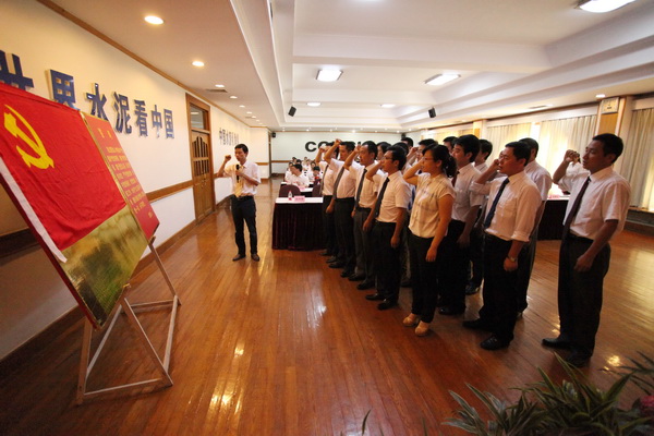 宁国水泥厂党委委员、纪委书记胡贤光同志带领17名新党员进行了庄严的入党宣誓。