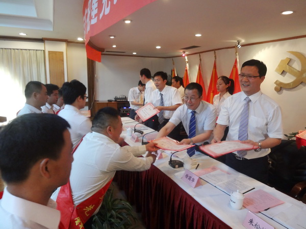 三公司领导向党员示范岗、党员先锋和优秀班组颁发了奖牌和证书,并合影留念。