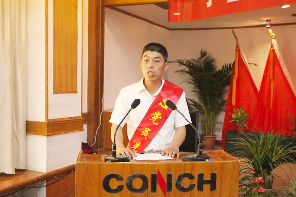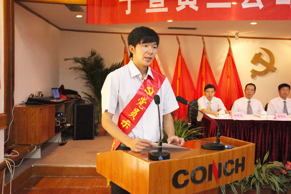 会上,新党员代表宁国水泥厂工会赵杨同志代表全体新党员郑重承诺:坚定党的理想信念,牢记党的宗旨,以身边的优秀党员为榜样,用一名党员的标准严格要求自己,通过工作实践,为党和人民的事业、为海螺的发展壮大奉献青春热血,使自己的一言一行无愧于共产党员的光荣称号。