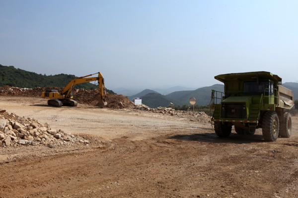 来到开采平台,矿车和装载机在几处开采点有条不紊地装运石灰石。虽然才8点多,但太阳已经升的老高,火辣辣的。看到一台加油车正在给钻机加油,大家走了过去。打过招呼,加油车司机介绍,矿山的保供量大,作业点多,为减少工程机械不必要的长距离移动,加油车每天都是通过电话联系,开到各作业点给正铲、反铲、装载机、钻机加油。