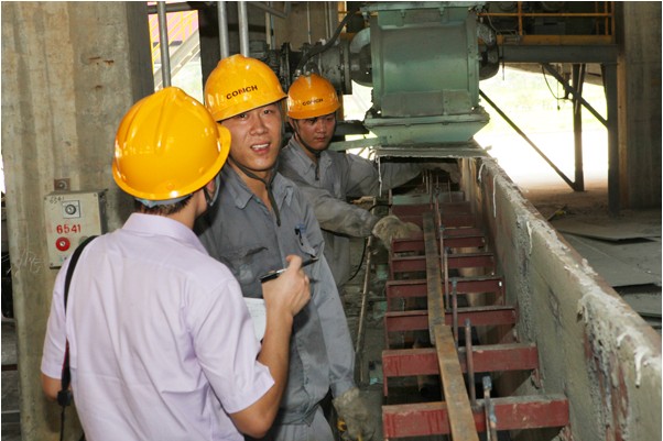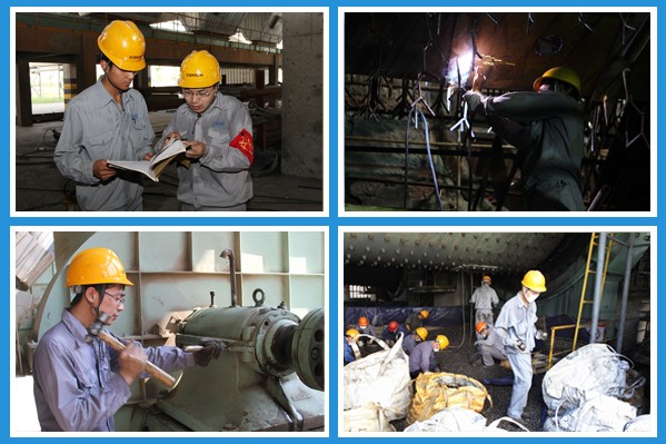 听说芜湖海螺六线的检修,是投运以来的第一次大规模计划检修,我们在分厂安全主管曹钧的带领下又来烧成系统检修现场。维修人员都在紧张地忙碌着,维修、电焊、搬运……汗水湿透衣背。篦冷机外,几个维修工正在进行风机轴承检查保养;钻到里面,只见焊花飞扬,焊工聚精会神地进行铆固件焊接作业,材料供应厂家来人在查看、拍摄浇注料情况。被这种紧张有序、认真专注的气氛包围和感染着,网站工作人员都不忍上前打扰。