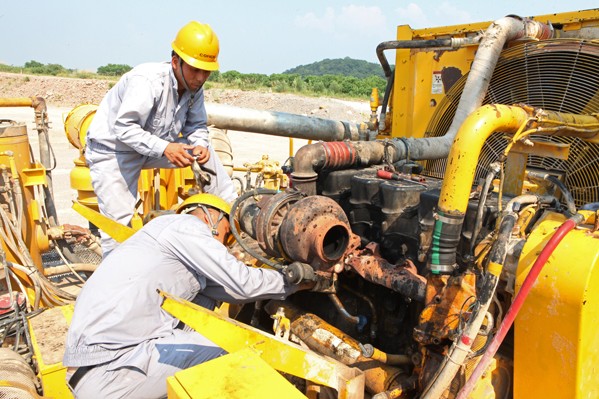在矿山开采平台,网站工作人员见到站在DM45钻机上的矿山工程机械主管谢振宇。相互笑着握手问候后,他将安全帽沿往上顶了顶,说道:钻机发动机有些异常,我们紧急通知了厂家。为保证生产不受影响,卡特售后维修技术人员一到公司后,我们就请他们用带来的ET软件进行检测,尽快排查出故障原因。