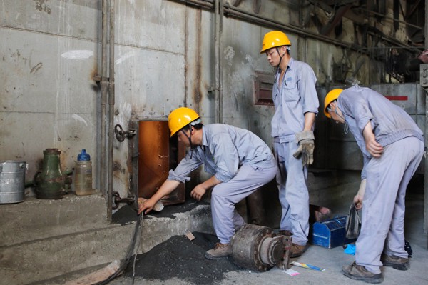 在窑头电收尘外的通道上,我们遇到二分厂环润工段技术负责人魏国君。他介绍,这次电收尘振打夹板钻子更换量比较大。网站工作人员问道:“收尘内不通风,你们防暑降温有什么措施啊?”“我们是三人一组,每半小时轮换一人。饮用水有人送到现场,我们休息时也可以到下面的茶水站去。”他边说边比划着。