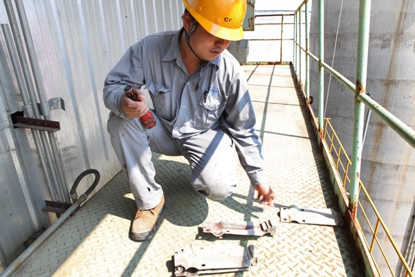 在芜湖海螺六线窑头电收尘检修现场,环润工段余江说:“这次检修电收尘更换维修量大,以前极丝经常坏,现在问题比较突出的是振打夹板。”“我正在拟函,联系厂家。” 维修工段梁宝平接过话来。维修质量直接关系到运行,而运行与大家的工作业绩考核都是挂钩的,参与检修的人对质量都很上心。