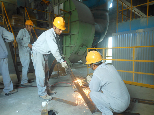 磨机巡检平台上气温高达40多度,通讯员采访时,站在上面不动都淌汗。但是为尽快消除隐患,保障磨机安全运行,维修人员专注地焊接着。焊花飞溅,亮光闪闪,现场的员工都在追赶时间。