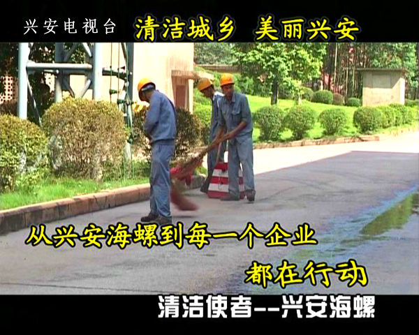 原来,这是兴安电视台在推出“清洁使者”公益广告,这是兴安县政府为培养广大市民“清洁卫生”意识,维护兴安县城乡良好的生活环境、为广大生产企业的环保建设树立榜样。