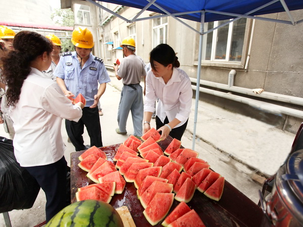 7月份,宁国水泥厂发动各职能部门抽调人员,集中资源力量开展制造分厂整治现场环境专项整治。厂办充分发挥后勤保障功能,牵头职能部门做好现场送水服务工作。自7月份以来,工厂还每天组织对各区域苗木、草坪洒水,安排海螺宾馆、幼儿园开展下现场送清凉活动,将西瓜、绿豆汤、饮用水送到四大分厂一线员工手中,深受广大员工拍手叫好。