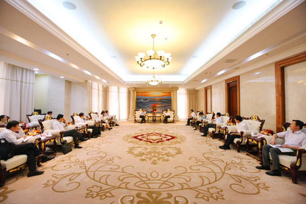 2013年8月21日,工商银行安徽省分行副行长梁延国一行8人来海螺集团调研。海螺集团总经理任勇率海螺水泥副总会计师夏小平、海螺型材副总会计师汪涛及相关部门负责人热情接待了梁副行长一行。