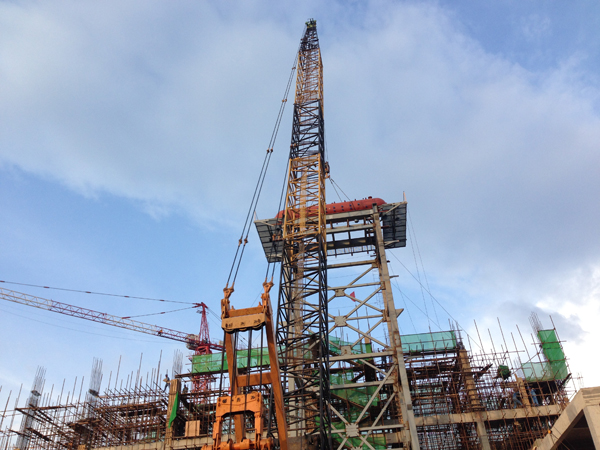 由于受现场场地所限,加之汽包重达26吨,钢架标高32米,致使锅炉汽包吊装成为项目建设最难的安装节点。为保证汽包安全顺利吊装到位,公司组织安装、监理单位现场不断优化吊装方案,从人员、技术、安全、设备等方面作了细致的准备,并重点抓好吊点和吊具的配合以及履带吊、汽包卸车等作业环节的衔接管理,确保了汽包的一次性吊装就位,为下一步锅炉受热面大件吊装创造了有利条件。