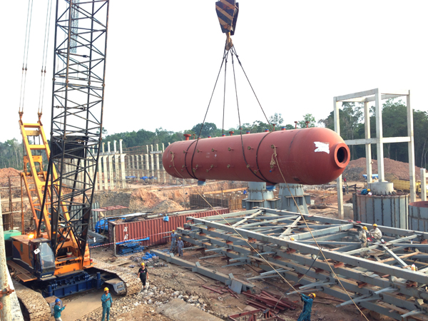 2013年9月12日,南加海螺项目建设现场再传喜讯,下午16时30分,2×18MW燃煤自备电站1#循化床锅炉汽包顺利吊装成功,这标志着南加海螺燃煤电站项目正式进入到设备安装阶段。