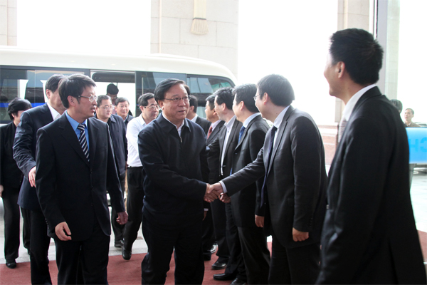 下午15时50分,陆浩同志一行在安徽省人大常委雷光鹏、芜湖市委书记高登榜等省市领导陪同下,到达海螺国际会议中心。海螺集团总经理任勇率公司领导齐生立、王建超、汪鹏飞、万涌、李群峰及相关单位和部室负责人热情迎接了督导组领导一行。
