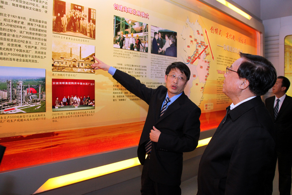 在任勇总经理等领导陪同下,陆浩同志一行观看了海螺集团专题介绍片,参观了图书馆、集团展厅。