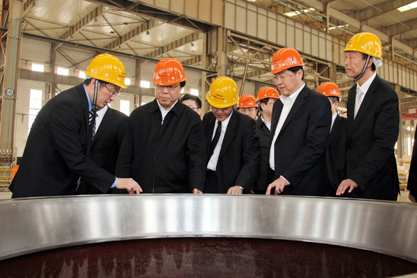 陆浩同志一行还来到海螺节能装备制造基地,参观了海川节能公司余热发电、立磨车间,察看了余热发电锅炉、立磨构件等节能设备生产,听取了节能装备与技术研发、应用情况的介绍,就产品性能特点等与公司领导进行了交流。