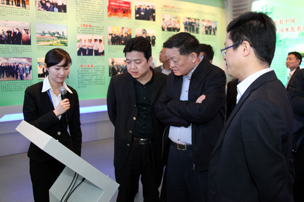 会谈前,在万副书记的陪同下,兖矿考察团参观了集团展厅、图书馆等地,观看了“中国海螺 三十而立”专题片。