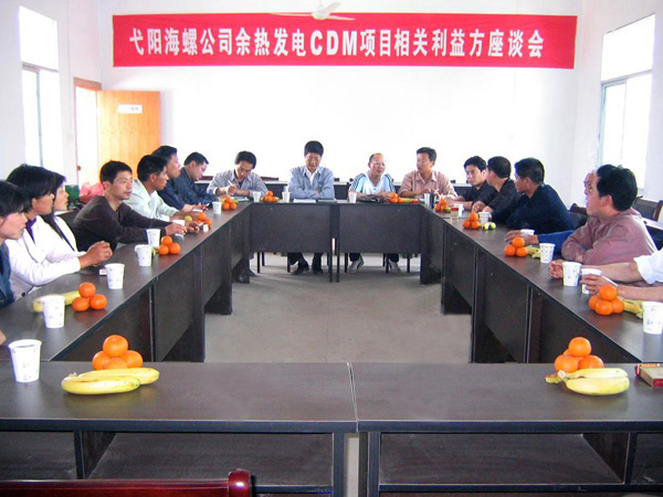 与会人员听取了余热发电CDM项目介绍后,纷纷表示支持弋阳海螺18000千瓦余热发电项目的建设。