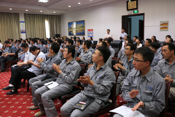 比赛开始前,各代表队领队抽签确定了各参赛代表队的序号,竞赛活动设置了仲裁组,负责现场题目答案正误的裁定,保证了比赛结果的公平、公正、公开。下午15点,在现场观众的阵阵掌声中,竞赛活动正式开始,主持人逐一介绍了各参赛代表队,选手们纷纷亮相。受集团公司领导委托,陕甘区域主任秦宏基应邀到场,并作了热情洋溢的动员讲话。