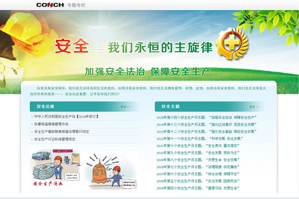 2015年6月份是全国第14个“安全生产月”,海螺水泥股份公司深入贯彻落实国务院安委会办公室关于开展“安全生产月”活动的工作部署,以“加强安全法治、保障安全生产”为主题,制定了2015年“安全生产月”活动方案,全面推动安全生产月各项工作的落实,营造良好安全生产氛围。各区域、子公司结合自身实际,组织开展了形式多样、内容丰富的安全活动,以增强全体干部职工安全意识和防范事故的能力为重点,坚持营造“安全管理,人人有责”的浓厚氛围,突出活动主题,积极创建“人人管安全,人人要安全”的和谐企业,促进安全生产状况持续稳定发展。