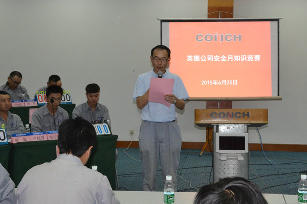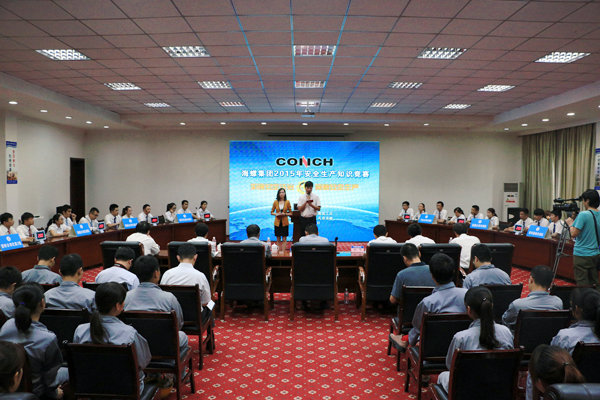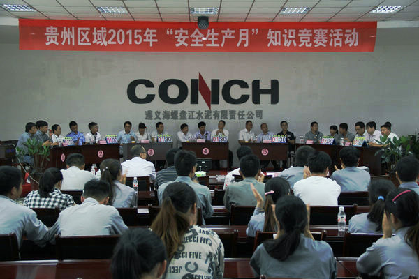 开展安全知识竞赛。为了提高员工学习安全知识的积极性,增强事故预防和应急处理能力,增强员工“对自己、对家庭、对企业、对社会高度负责”的安全意识。 2015年6月26日,安全环保部、生产调度中心、集团工会联合在礼泉海螺三楼大会议室举办了集团公司2015年安全生产知识竞赛活动,陕甘区域及相关单位员工代表100余人现场观看了竞赛活动,陕西省咸阳市安监局总工程师到场并作指导。