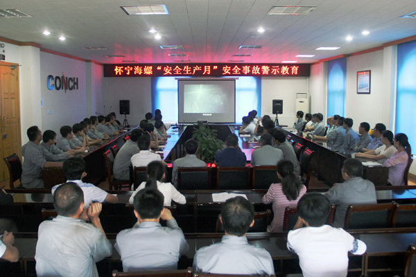 组织观看安全警示教育片。把历史上的事故当成今天的事故看待,警钟长鸣;把别人的事故当成自己的事故看待,引以为戒。各子公司组织广大员工观看《依法治安的法律重器——聚焦新<安全生产法>》、《生命不能重来》、《隐患直击》、《生产安全事故典型案例盘点》等安全生产警示教育片。怀宁海螺、枞阳海螺等公司开展了“以身边的事教育身边的人”等活动、通过一系列研讨学习活动,进一步提高员工事故预防能力,增强急救知识和应急处置能力。