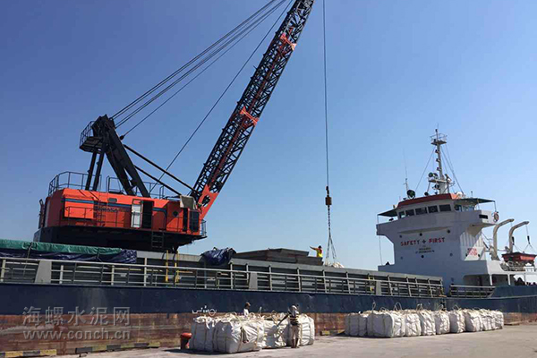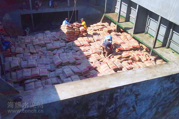 发往西加省AnugerahSejati公司2000吨袋装水泥正在装船