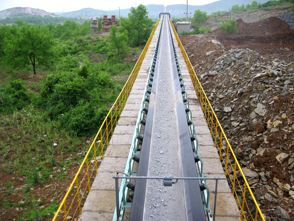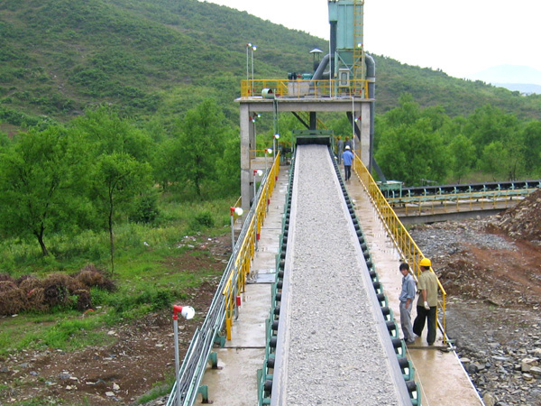 石灰石通过3.3公里长胶皮带向原料堆场输送