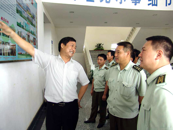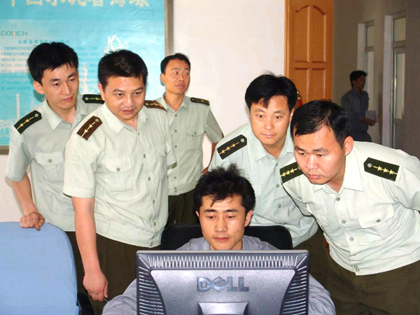 部队干部认真观看操作员现场操作