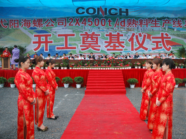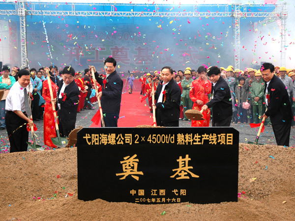 5月16日,弋阳海螺水泥项目主体工程正式开工。江西省委常委、常务副省长凌成兴,副省长洪礼和及省直有关部门领导;中共上饶市委书记姚亚平,市委副书记、市长刘和平,市人大常委会主任肖天连等省、市、县有关领导;海螺集团副总经理、海螺水泥股份公司总经理任勇,海螺水泥股份公司副总经理汪鹏飞等领导以及弋阳海螺干部员工、施工单位代表参加了开工奠基仪式。