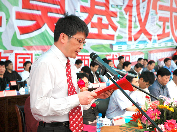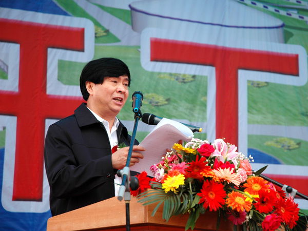 奠基仪式上,海螺集团副总经理任勇受郭文叁董事长委托,代表海螺集团向出席奠基仪式的省市领导表示热烈的欢迎,并向长期关心、支持海螺发展的社会各界表示衷心的感谢。他说,截止去年底,海螺在江西省的三家企业已累计产销水泥1600万吨,上缴各类税费2.5亿元,消化各类工业废弃物300多万吨,为当地经济建设作出了应有的努力。弋阳海螺水泥项目是海螺在江西省投资建设的第四个项目,也是海螺集团“十一五”发展规划的重要组成部分。希望各参建单位,发扬连续作战的精神,锁定目标,精心组织,加强沟通,通力合作,确保工程质量和工期达到预期要求;同时也希望地方各级政府部门,一如既往地给予关心和支持。