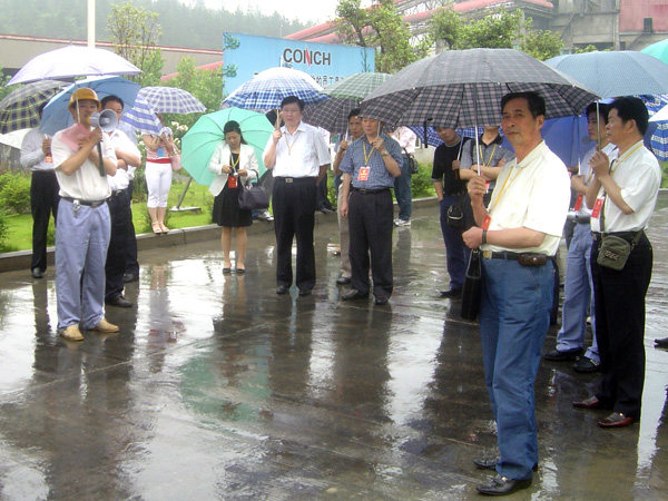 虽然天公不作美,下起了大雨,可兴安海螺现代化的企业规模和优美的厂区环境引起了代表们极大的兴趣。他们冒着雨,兴致勃勃地参观了主生产线和中央控制室。公司总经理助理张胜利向代表们介绍了公司的概况和生产线基本工艺流程以及二期工程规划等。代表们听取了介绍后,纷纷表示了由衷的称赞。