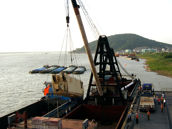 2007年5月18日下午,芜湖海螺物流公司成功起吊铁道部64吨战备设备。在该设备起吊前,公司高度重视,提前对起重设备进行全面检查,并组织各专业技术人员进行研讨,制订详细起吊方案,确保作业安全。在实施作业过程中,统一指挥,分工协调,充分考虑战备需要,急之所急,从卸船到装车,一次性完成该设备的安全起吊,受到客户单位的好评,并开创了公司自成立以来单件起重之最。