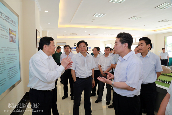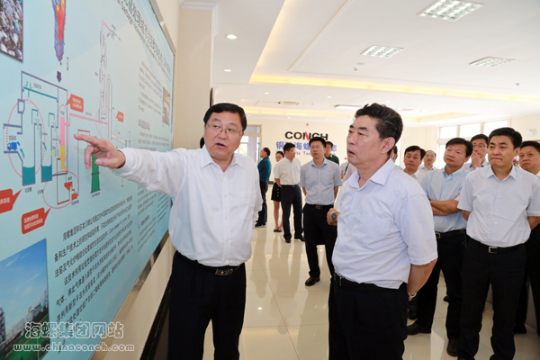 参观过程中,高登榜董事长向邓向阳常务副省长汇报了海螺集团的生产经营状况以及节能环保产业发展情况。2017年上半年,海螺集团认真贯彻落实省委省政府决策部署,紧紧围绕“一强三冠”发展目标,取得了较好的经营业绩,产销效均保持稳定增长。集团首创的利用水泥窑协同处置生活垃圾项目,目前已在贵州、重庆等全国11个省市推广建设,其中20个项目已投入运行且目前运行状态均良好。
