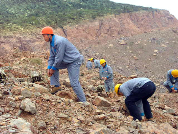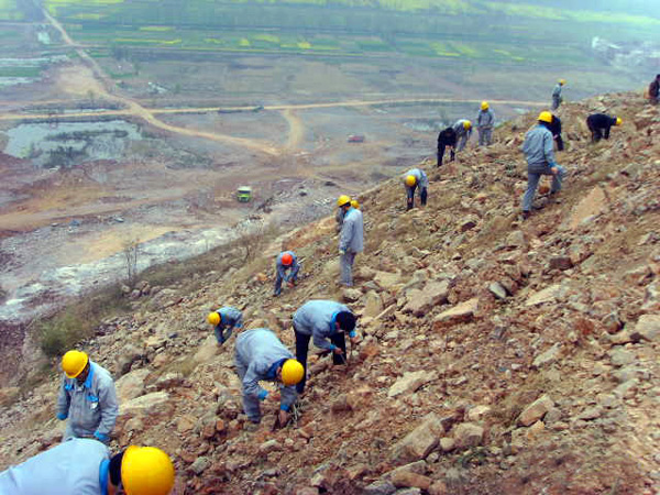 枞阳海螺公司领导带领员工在矿山后坡植树