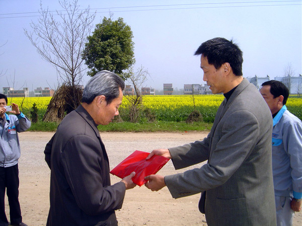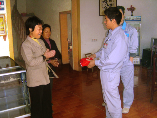 何四成总经理助理将捐款送到装运分厂员工家属手中
