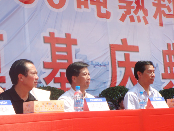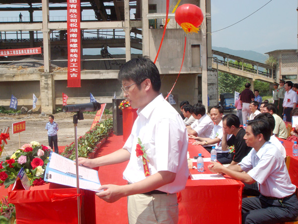 仪式上,中共新化县委书记吴建平作了发言,镇、村领导作了表态讲话。新化县政协主席、海螺项目协调办主任康新阶在庆典开始时介绍了湖南海螺扩建项目概况,以及政府承诺的与之配套的物流通道、拆迁安居工程进展情况和工期目标。