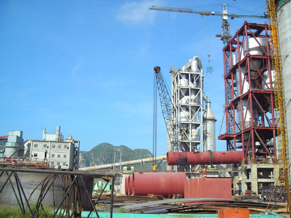 扶绥海螺二期项目日产5000吨熟料生产线窑筒体吊装和预热器安装现场