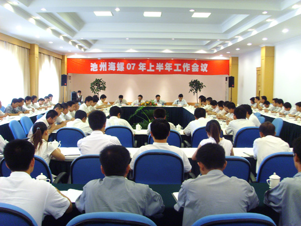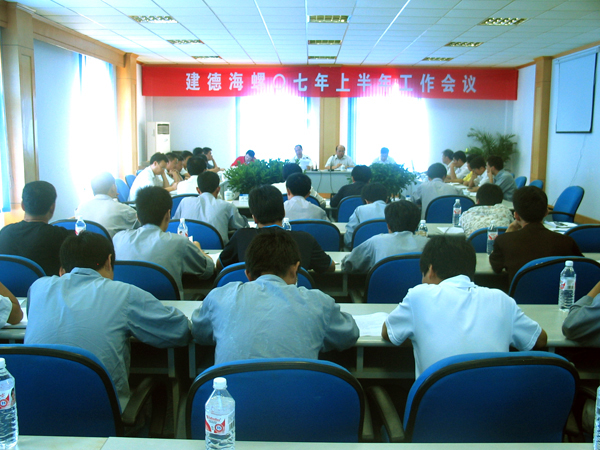 建德海螺公司上半年工作会议上,职能管理部门分别用幻灯片,利用图表、数据直观地对上半年的各项工作进行分析、总结,找出差距和存在不足,明确下半年工作目标,提出确保各项目标任务完成的保障措施。公司总经理刘庆生在总结中要求:一要理清工作思路,以节能减排、环保工作为抓手,按照国家法律法规的要求按规范要求完成各项工作;二要积极落实会议精神,发动全员为全年目标任务的完成努力工作;三要以年中会议精神和年中检查中发现问题的整改为抓手,狠抓队伍建设,持续推进企业不断向前发展。