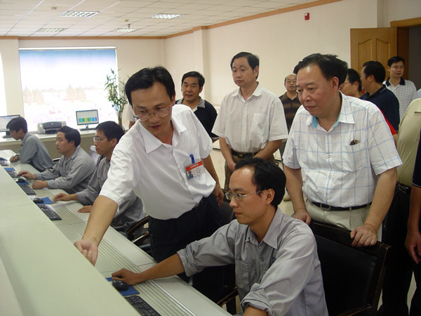 阳副主席在中控操作室听取水泥生产工艺介绍