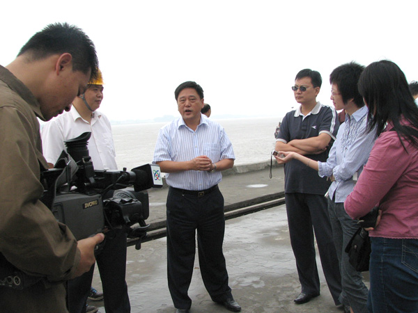 公司朱董事长在向记者团详细介绍专用码头