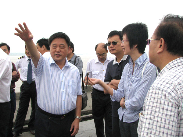 9月5日上午,“十一五”长江黄金水道建设巡礼记者团一行,在铜陵海螺公司董事长朱忠平、常务副总经理李群峰等陪同下,参观了铜陵海螺公司专用码头。该记者团由中央电视台、经济日报、中国国际广播电台等十多家媒体组成。