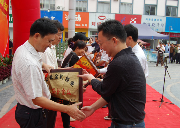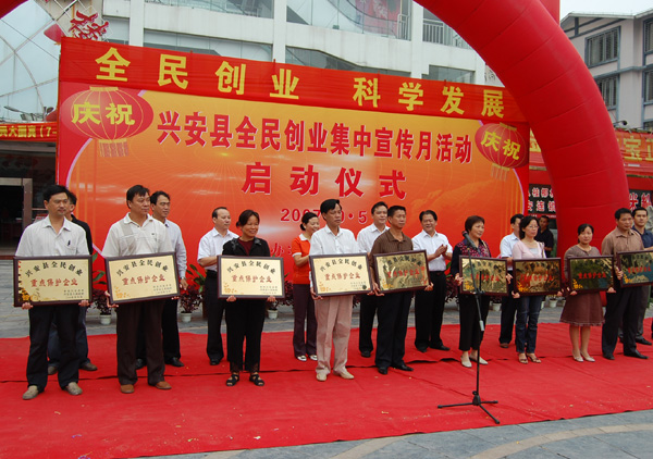 9月5日上午9:30分,兴安县举行“全民创业集中高潮启动仪式”,兴安海螺公司作为县十家重点保护企业之一,获得了县政府颁发的“兴安县全民创业重点保护企业”铜牌。
