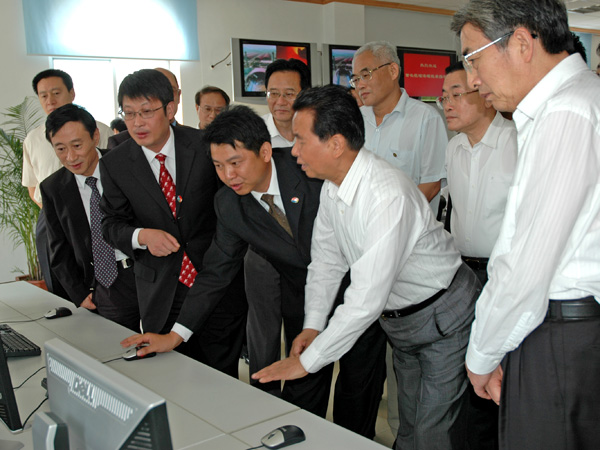 当吴官正书记等领导到达中央控制室时,操作员们纷纷起立,鼓掌欢迎,向吴官正书记等中央和省领导微笑致意。吴官正书记在中央控制室看得仔细,问得认真,他一边观看工艺电视,一边详细了解工艺流程与设备运行情况,询问到大窑胴体温度、原材料配比、质量检验方式等专业细节,显示出他对新型干法水泥生产工艺的浓厚兴趣,在场的公司领导和专业技术人员给以一一解答。吴官正书记等在中央控制室久久逗留,表现出他对海螺的重视和欣赏。他对郭文叁董事长和集团公司班子成员高度评价说:水泥企业搞到这个样子,做到了世界前列、亚洲第一,十分不容易。郭文叁同志,你们辛苦了!你们所走过的路子,完全符合中央发展循环经济、节能减排的精神。就是要“关小上大”,小水泥不关害死人,你们的路子是对的!